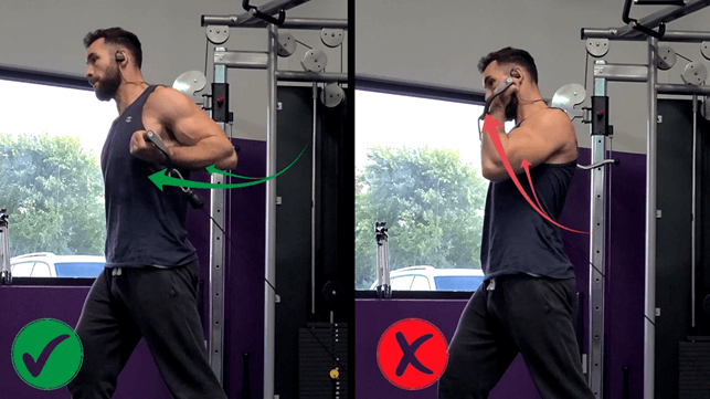 Instead, keep your elbows and upper arms back in the starting position the whole time. This will ensure that the long head stays stretched.