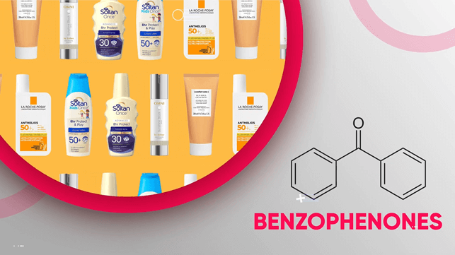 Benzophenones, which are used as UV-stabilizers in a bunch of personal care products, although they are most common in sunscreens.
